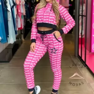 Conjunto Fitness No Fear em tecido platinado e estampa emborrachada