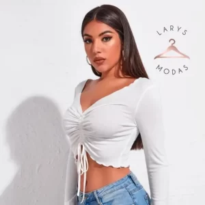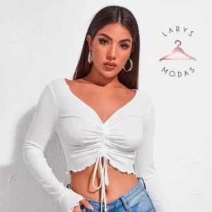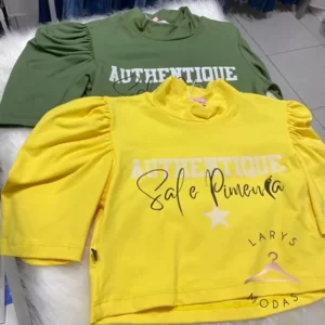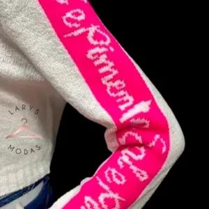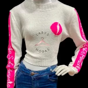 Cropped Tricô Sal e Pimenta com toca, bordado nas laterais